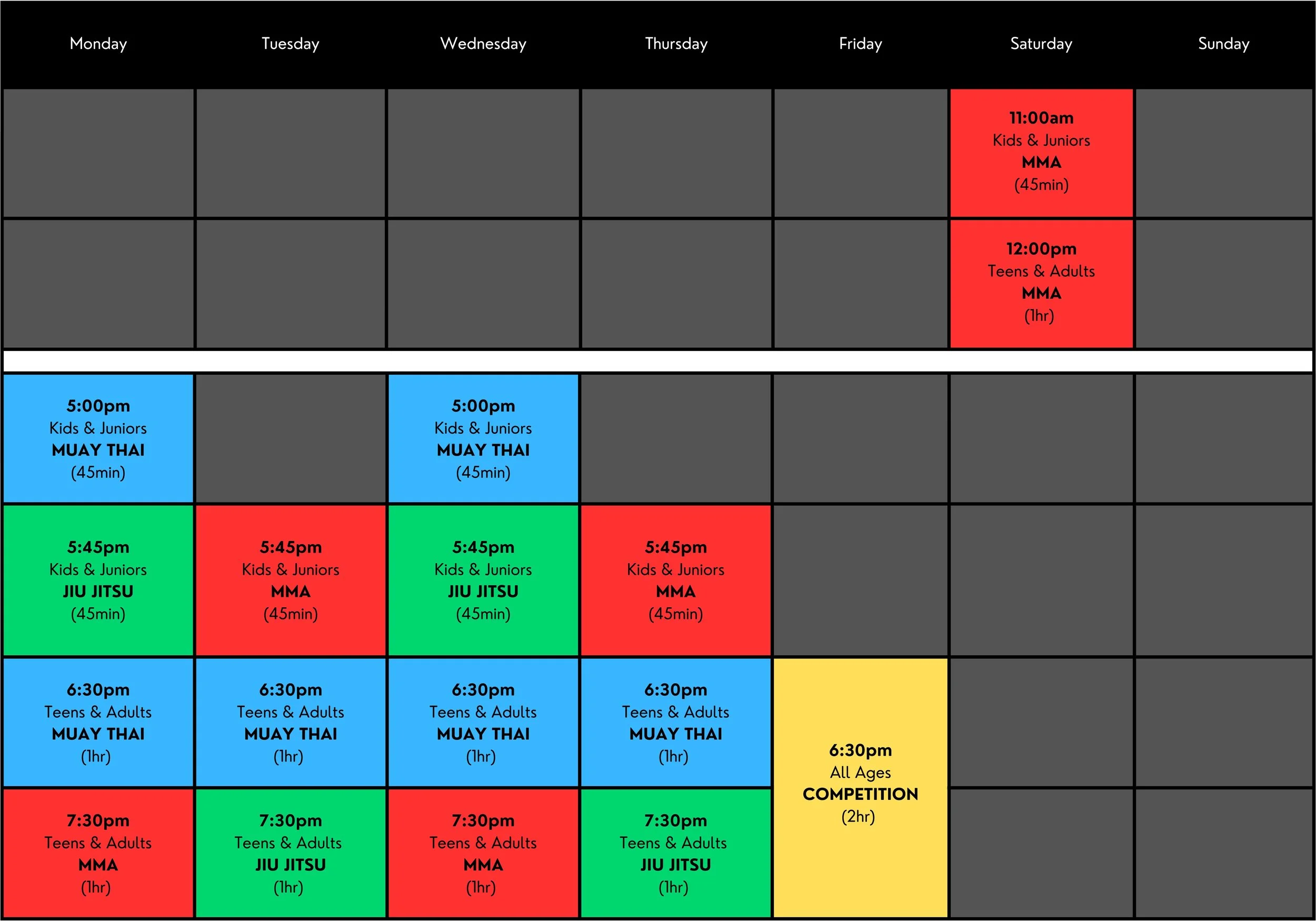 MMA (Mixed Martial Arts) is a comprehensive combination of all martial arts. It takes the most efficient characteristics from different practices to essentially create an entirely new discipline. MMA allows usage of both striking and grappling techniques when standing up and on the ground. Students who are enrolled in both our Brazilian Jiu Jitsu and Muay Thai classes qualify for our MMA program, as these are the top 2 leading martial arts in modern MMA. It is an incredible practice for combat sports and even better for self defense. MMA is open to kids and adults!
